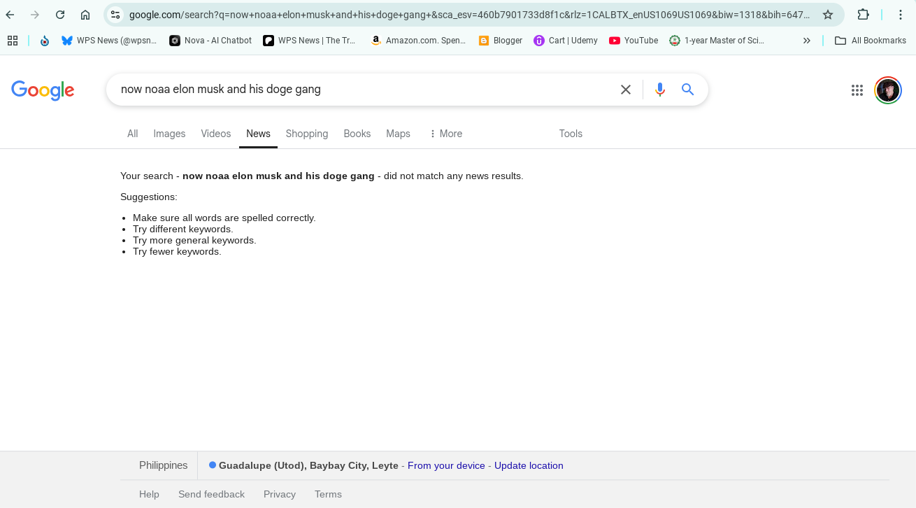 Curious about this situation, I decided to look it up on Google. At first, I didn’t find much at all under news searches (see screenshot). Then, when I changed my search to “NOAA Elon Musk and his Doge,” I found some interesting stuff. The only major news source covering this story was The Guardian, which made me wonder why there isn’t more buzz about something so important.