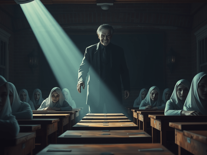 The lecture began, and Carla tried to focus, but there was something wrong. Dr. Winslow’s voice, though smooth and hypnotic, was like something from a nightmare. His words twisted in the air, slithering around the students, filling their minds with dark thoughts—thoughts of failure, of being unworthy. It wasn’t just the lesson that haunted them; it was the way he spoke, like every sentence was a slow torture. Carla’s mind began to spiral, doubts creeping in like cold tendrils. She wasn’t good enough. She’d never be a great historian. She’d never do anything meaningful.