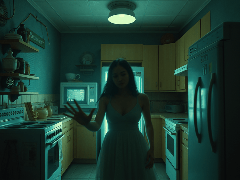 The kitchen light hummed too loud. The walls seemed to breathe when she wasn’t looking.