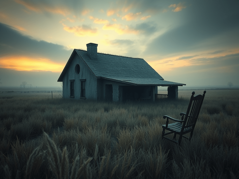 Wallpaper—sun-struck and yellowed. A rocking chair gently creaking near the fire. A coat hung beside the door. Stairs that rose into shadow. A child’s voice, distant and soft, calling someone’s name.