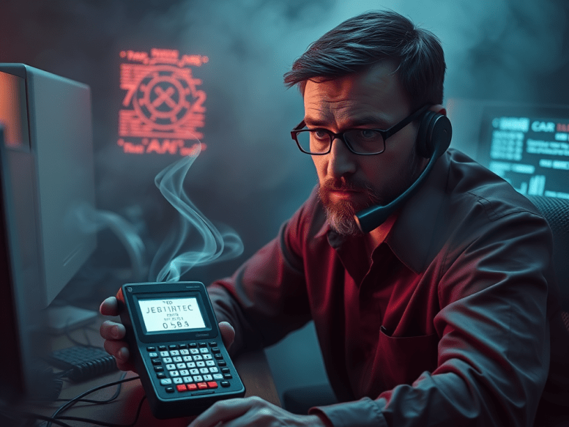 “It’s a—uh—vintage PDA? Said ‘limited release.’ Found it in a pawn shop run by a guy with no eyes. Paid in teeth.”