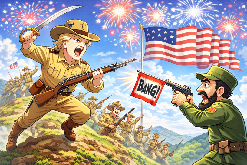 There was a time when American imperial ambition at least pretended to wear a suit, consult a map quietly, and mutter something solemn about freedom before lighting the fuse. Those days are gone. Now it’s done on a hot mic, in fragments, between rambling grievances and applause lines that sound like rejected monologues from a canceled cartoon.